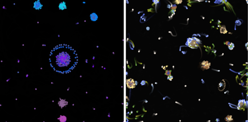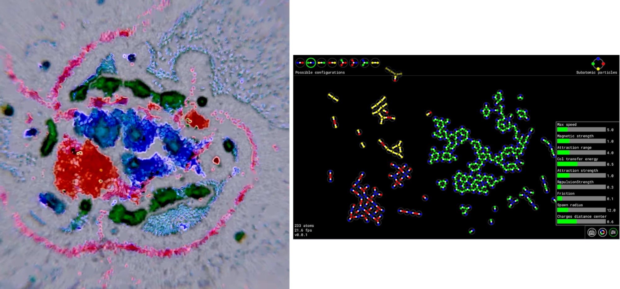 "Sometimes it's hard for me to believe that all of the complexity that we see in our life can arise from particle physics. Even humans, thoughts, and emotions. But for me, seeing how Particle Life can already create these lifelike structures in a much simpler universe makes all of it a bit more believable." - - Tom Mohr, creator of Particle Life (transcription from this video) |