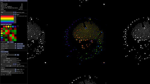 Mordvintsev's version of Particle Life: https://google.github.io/swissgl/#ParticleLife Mordvintsev's Particle Life in 3D: https://google.github.io/swissgl/#ParticleLife3d Another particle life simulation: https://hunar4321.github.io/particle-life/ Particle Playground: https://mathew-harvey.github.io/Artificial-Life/ Let me know if there is anything else you think I should include - jeffrey@ventrella.com Ventrella.com/Clusters |